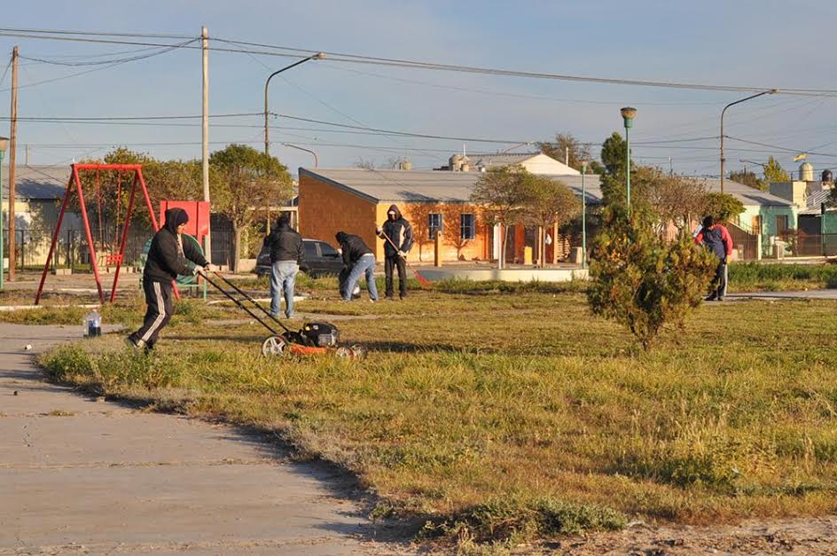 “La semana pasada estuvimos terminando con trabajos en la placita que se encuentra detrás del Centro Comunitario de las 490 Viviendas, con un número bastante importante de gente trabajando que barrió, corto el césped, emprolijó la plaza”, repasó Moraga.