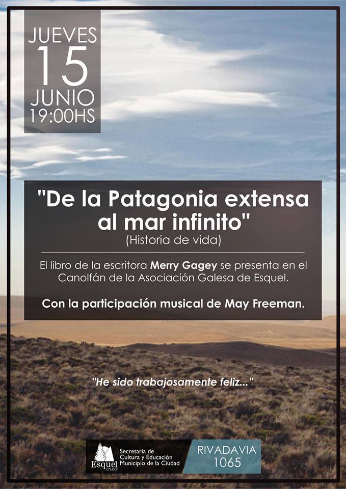 La presentación se realizará este jueves 15 de Junio a las 19:00 horas en el Canolfán de la Asociación Galesa de Esquel (Rivadavia 1065) con la participación musical de May Freeman.