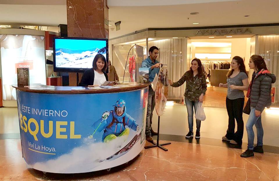 La Municipalidad de Esquel, a través de la Secretaría de Turismo, está promocionando el destino, y el CAM La Hoya en particular, con un stand instalado en el Shopping Patio Olmos de la Ciudad de Córdoba, en vistas a la temporada de invierno 2017. Encabezan la delegación el secretario Diego Lapenna junto al director Mariano Riquelme, acompañados por informantes turísticos del área.