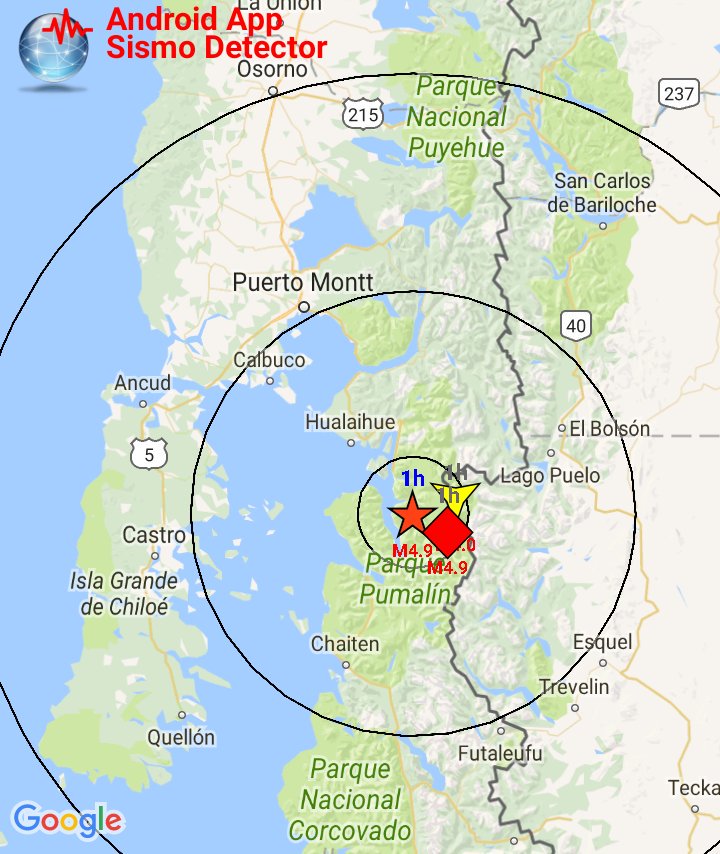 El sismo se produjo en la tarde de hoy a las 19:08:29 horas del 25 de Junio, tuvo una magnitud de 4.9Mb con epicentro a 65 kilómetros al Oeste-suroeste de Lago Puelo; Argentina; con una profundidad de 18.6 kilómetros (Vía #USGS).