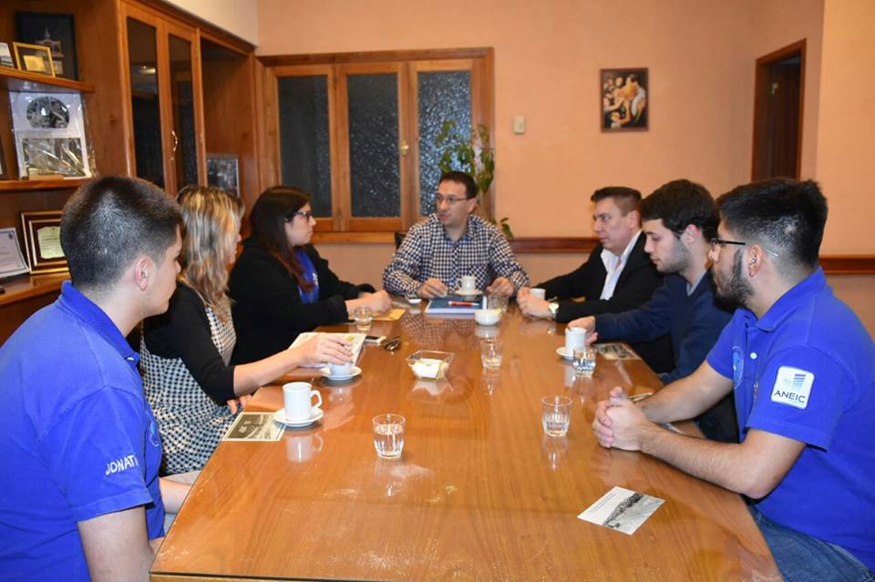 El intendente de Trelew, Adrián Maderna, junto con la Directora de Turismo Mónica Montes Roberts y el Secretario de Hacienda, Sergio Sardá, recibieron en el Palacio municipal a un grupo de estudiantes de la Carrera de Ingeniería Civil de la Universidad Nacional de la Patagonia San Juan Bosco para conversar sobre la tercera edición de jornadas de capacitación.