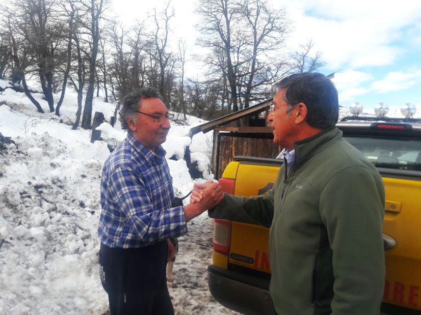 El presidente de la Administración de Parques Nacionales, Eugenio Bréard, recorrió hoy diversas zonas del Parque Nacional Lanín que fueron afectadas por el temporal de nieve.