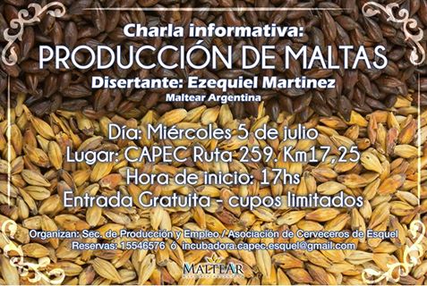 Este miércoles 5 de Julio en instalaciones del Centro de Apoyo a la Producción de Esquel y la Comarca (CAPEC) se desarrollará una capacitación sobre la producción de maltas.