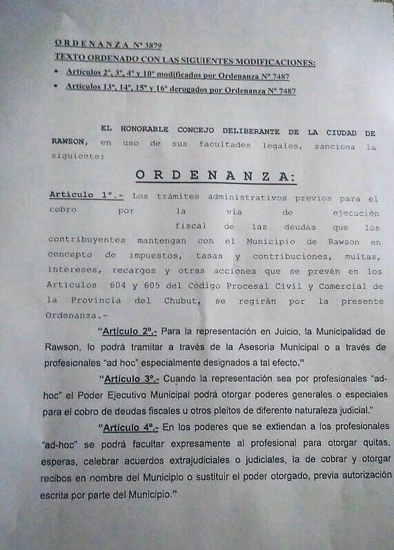 Luego de aclarar que no se trata de una tercerización del cobro de impuestos, “sino de dar el cobro de la cartera de morosos que tenemos en la Municipalidad de Rawson a un profesional”, dijo que “quizás la concejala Genoff no recuerda que ella fue la que modificó una ordenanza en el año 2014, cuando era presidenta del Concejo Deliberante por la cual se le da al Poder Ejecutivo la potestad de contratar a un profesional para brindar sus servicios al municipio. Dentro de eso está el cobro de deudas de la cartera de morosos”.