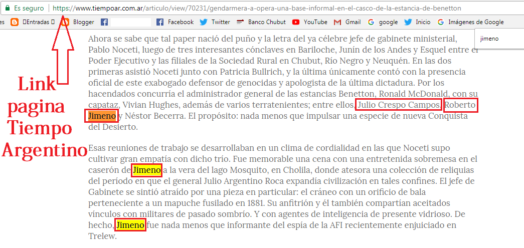 Se espera que en las próximas horas Tiempo Argentino ratifique o rectifique lo escrito en la nota Gendarmería opera una base informal en el casco de la estancia de Benetton en la que se involucra a Julio Crespo Campos y Roberto Jimeno para que la verdad salga a la luz y se pueda saber a ciencia cierta quien miente y quién dice la verdad de lo contrario este caso terminará en la Justicia que deberá investigar a fondo está acusación gravisíma del periodista Ricardo Gagendorfer del medio «Tiempo Argentino» contra los dos vecinos de Cholila.
