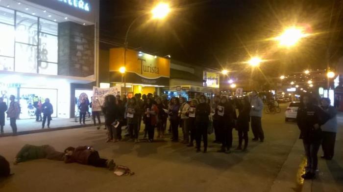La manifestación fue este lunes frente a las puertas mismas del juzgado federal de Guido Otranto, se leyeron consignas con alto parlantes y además escribieron tendidos en el suelo con sus cuerpos la frase «Donde está Santiago» para que sea captada por el drone vigilador.