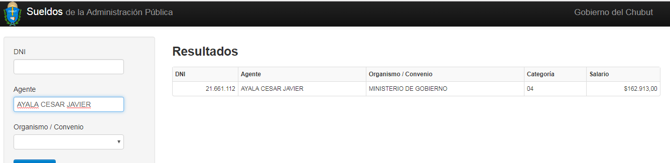 Sueldo de la administración pública. Página oficial Gobierno del Chubut