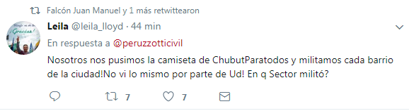Leila: «Nosotros nos pusimos la camiseta de Chubut Para Todos y militamos cada barrio de la ciudad! No vi lo mismo por parte de Ud! en que sector militó?