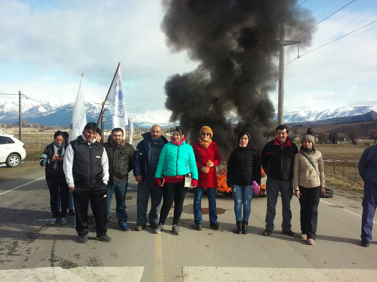 Trabajadores municipales de Cholila cortaron la ruta 71 ante la falta de pago de sus haberes correspondientes al mes de julio y también prendieron fuego gomas en la Municipalidad.