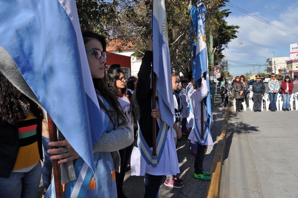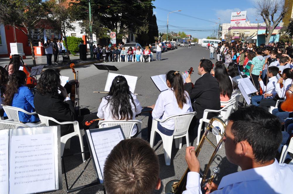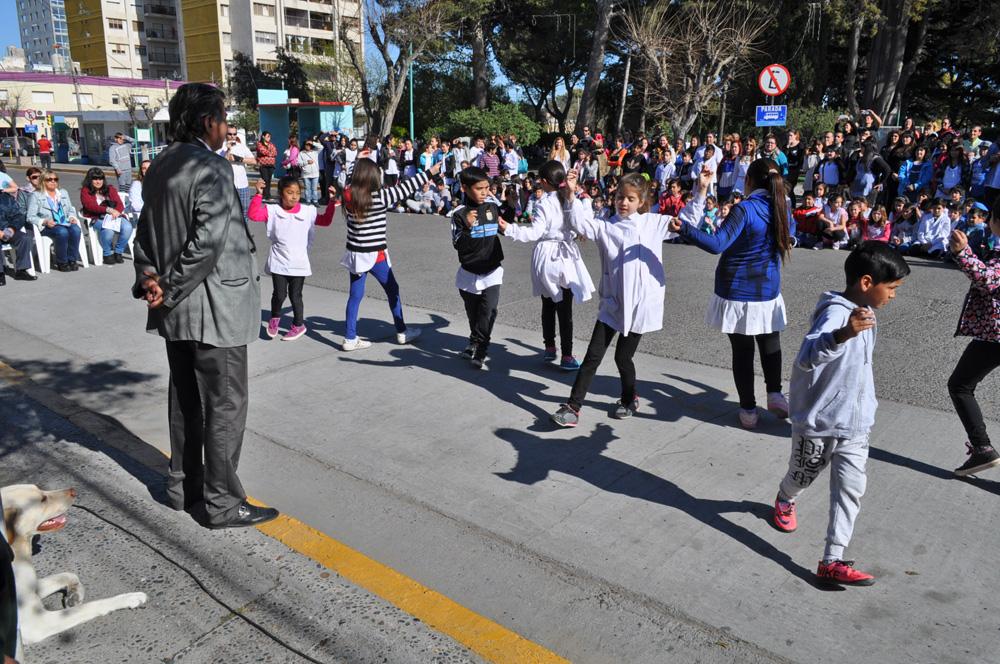 La intendenta Rossana Artero encabezó este martes la celebración por el aniversario número 135 de la Escuela Provincial Número 4 de Rawson, con un acto que se realizó en las afueras del Palacio Municipal, sobre la calle Moreno.