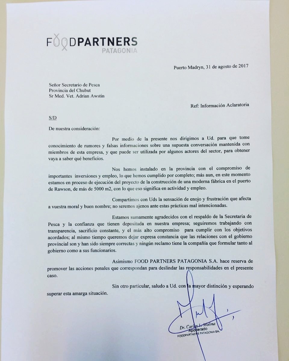 Un seguidor de @AwstinAdrián difundió la nota de la empresa pesquera, al igual que el Secretario de Pesca quién nos mantiene bloqueados en twitter por lo tanto no podemos corroborar sus twitters, pero nuestros lectores nos informan que bajo el hashtag #LaMentiraTienePatasCortas este seguidor difundió la defensa de Awstin quién no puede ocuparse asiduamente del tema porque se encuentra disfrutando del sol del Caribe.