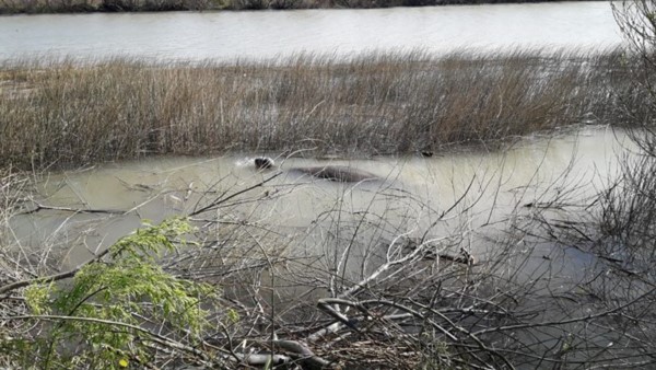 Apareció esta mañana frente al corralón municipal y quienes lo vieron aseguran que estaba desorientado y con lastimaduras. Tras varios minutos, volvió al río Chubut.