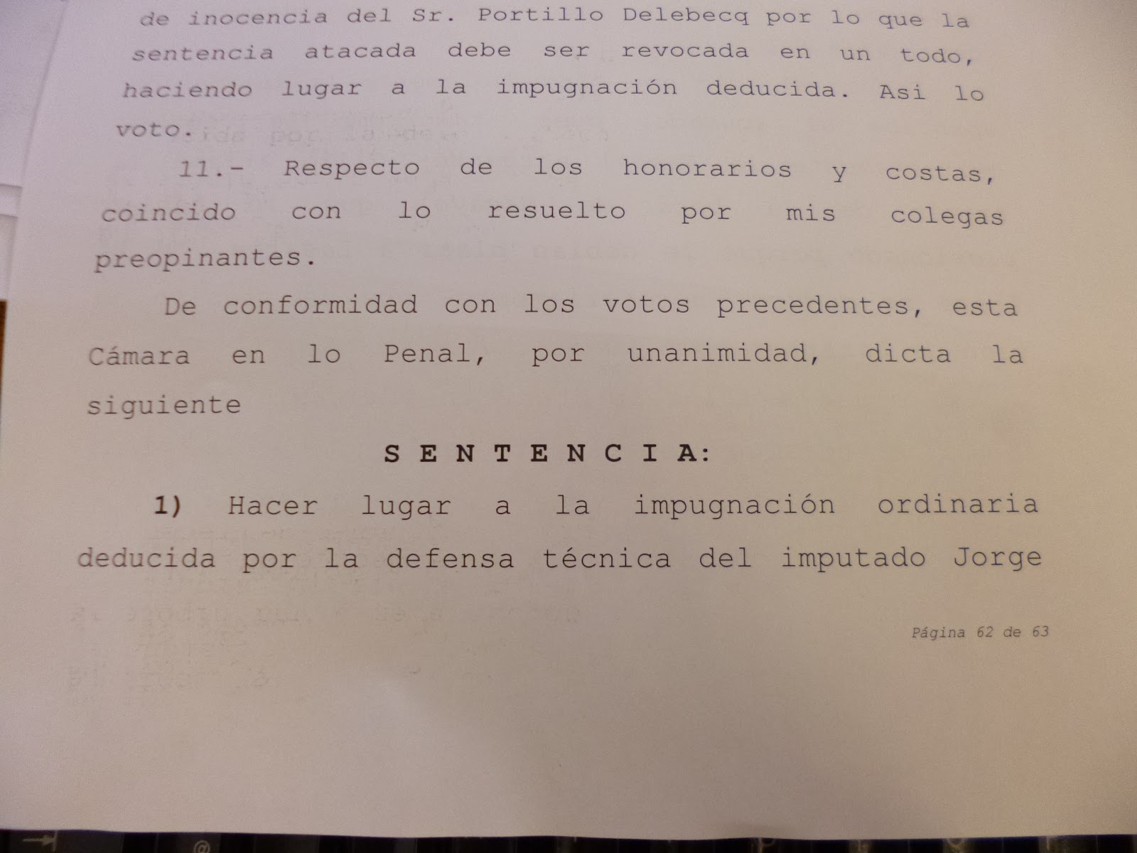 Por unanimidad los integrantes de la Cámara Penal decidieron la absolución de Portillo Delebecq. La Fiscalía analiza la posibilidad de presentar un recurso ante el Superior Tribunal de Justicia.