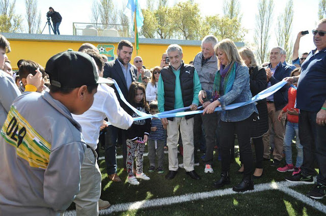 La dirigencia del Club Defensores de La Ribera agradeció a la intendenta Rossana Artero «su extraordinario apoyo» a la institución rawsense, en el acto de inauguración de la cancha de césped sintético que compartió con el gobernador Mario Das Neves, autoridades municipales y provinciales.