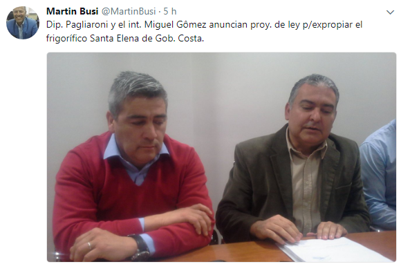 Hoy la Legislatura de Chubut estuvo convulsionada por varios temas, uno de ellos fue el proyecto de ley que presentaría el Diputado Provincial de Cambiemos Iván Pagliaroni por pedido del Intendente de Gobernador Costa Miguel Goméz para expropiar el Frigorífico Santa Elena conocido en los pagos cordilleranos como el «Efante Blanco».