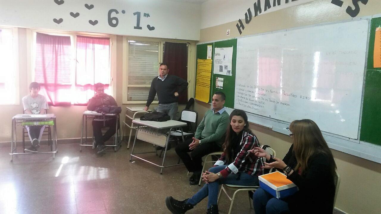 La primera de las charlas fue dada por el titular del área, Hernán Albarracín, a los alumnos de Sexto Año de la Escuela N° 752, de Comercio.