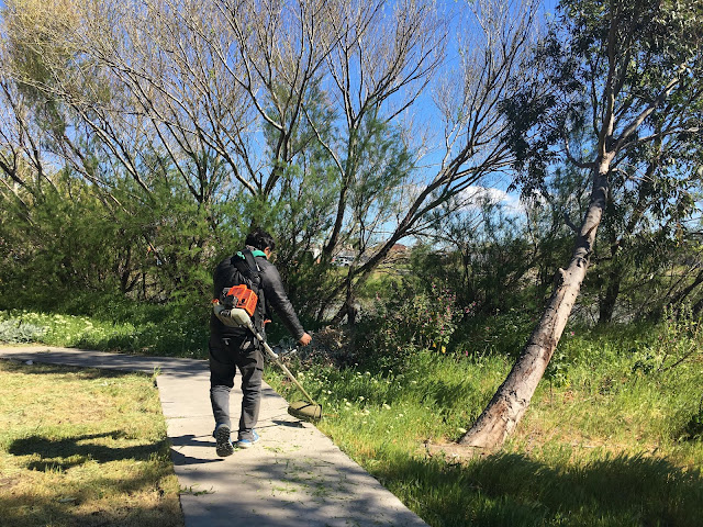 La Secretaría de Obras y Servicios Públicos intensificó la tares de limpieza, desmalezamiento y barrido en distintos sectores de Rawson.