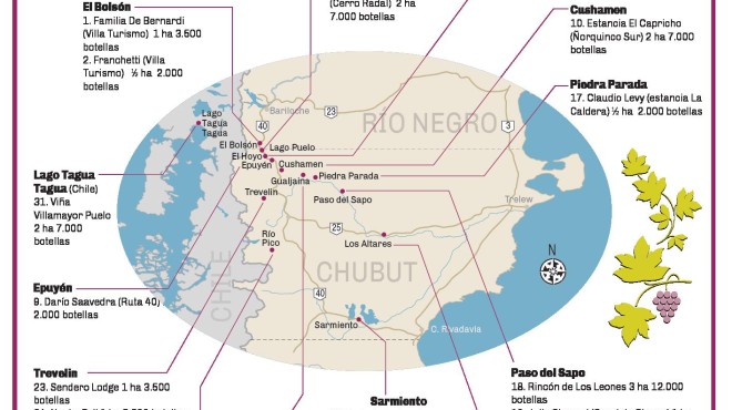Ya comprobamos los resultados de las primeras producciones, ahora queremos saber cuál es el horizonte que promete Chubut en el mapa nacional de la vinicultura”, anticipó Darío González, el enólogo que gestó la mayoría de los 30 emprendimientos familiares distribuidos desde Villa Turismo (El Bolsón) hasta Río Pico (en la cordillera) y otros en plena meseta, como Paso del Sapo, Gualjaina y Sarmiento.Desde su óptica, la oportunidad de “ser declarada provincia vitivinícola nos abrirá la posibilidad de herramientas que actualmente llegan solo hasta Neuquén y Río Negro”.