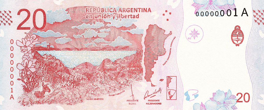 En el billete de 20 pesos, cuyo papel es de algodón de 95 g/m2, predomina el rojo; mantiene el mismo tamaño de la Línea Peso y será distribuido progresivamente desde mañana a través de la red de sucursales bancarias y cajeros automáticos de todo el país.
