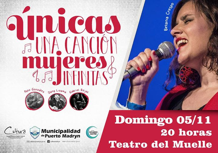 Será el domingo 5 a las 20 en el Teatro del Muelle La Subsecretaría de Gestión Cultural de la Municipalidad de Puerto Madryn invita al espectáculo “Únicas. Una Canción. Mujeres Infinitas” de la cantante Betania Crespo.