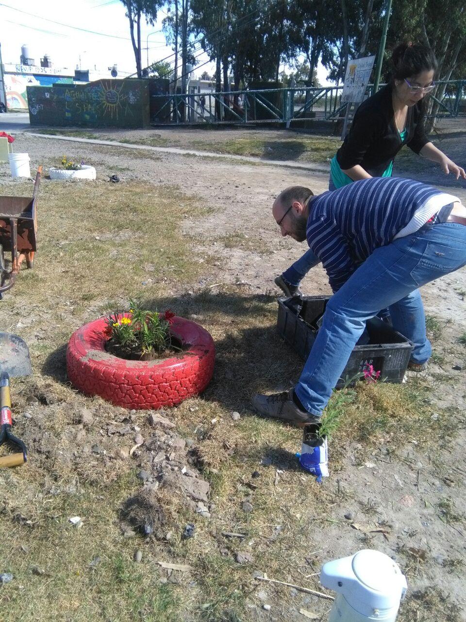 Personal de la Secretaría colocó y pintó neumáticos y forestó con plantas provenientes del Vivero Municipal, entre otras tareas como limpieza en general.
