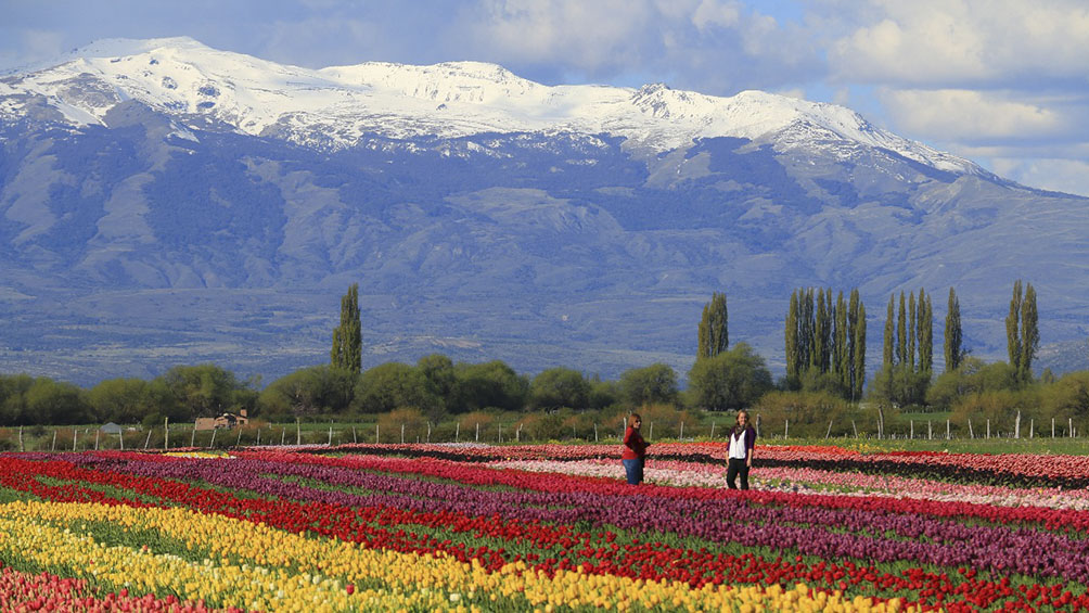 El campo de tulipanes de Trevelin, el más importante del país, es una chacra con una superficie de tres hectáreas en donde se desarrollan unas 27 variedades de colores de la flor.