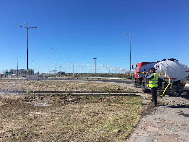 La Municipalidad de Rawson continuó durante la última semana con los trabajos de embellecimiento y parquización de la rotonda de acceso al Puente Néstor Kirchner. Dicha forestación es llevada a cabo por personal dependiente de la Secretaría de Obras y Servicios Públicos, y las especies plantadas las provee el Vivero Municipal.