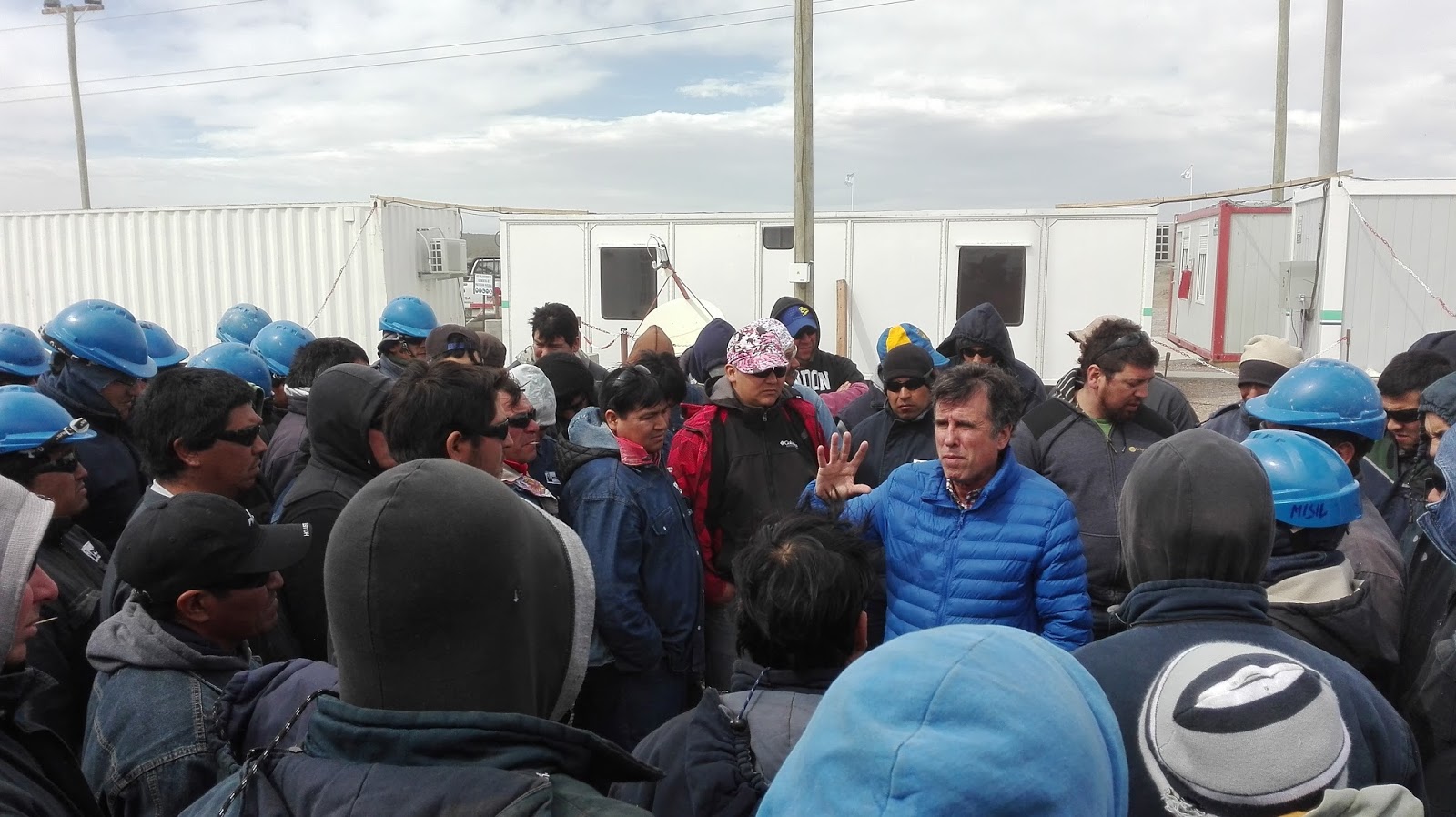Comenzó haciéndose presente en la yacimiento de PAE ubicado en las afueras de la localidad de Camarones. Allí compartió unas palabras junto a obreros de la construcción afiliados a UOCRA quienes pudieron conocer al candidato y escuchar su análisis de la realidad económica actual.
