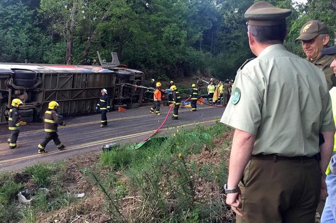 «En el lugar se encuentra personal de Carabineros, Bomberos y Ambulancias realizando trabajos de emergencias», añadió.La Presidenta Michelle Bachelet, en su cuenta de twitter, envió las condolencias a las familias de las víctimas y a los habitantes de Tirúa por este trágico accidente. «@mbachelet Lamentable noticia el volcamiento del bus en Victoria. Mi más profundo pésame a las familias de las víctimas y mi solidaridad con la comunidad de Tirúa», señaló la mandataria en su mensaje.