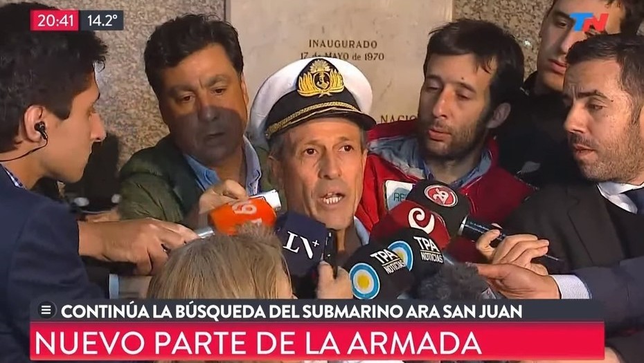 El vocero de la Armada, Enrique Balbi, aseguró esta noche que el «ruido constante» registrado horas atrás en el Atlántico Sur no provino del submarino ARA San Juan, que está desaparecido con sus 44 tripulantes desde el miércoles pasado luego de que perdiera todo tipo de comunicación con las bases terrestres.
