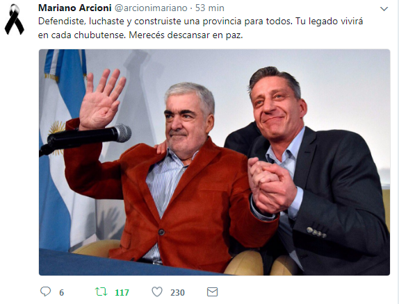 Así despidió Mariano Arcioni a Mario Das Neves por las redes sociales