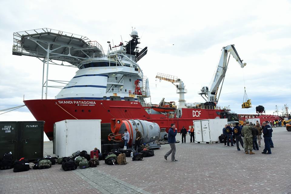 COMODORO RIVADAVIA (ADNSUR) – Este lunes por la tarde, en el puerto de Comodoro Rivadavia, suben equipos al Skandi Patagonia, un buque especial de exploración petrolera que había trabajado en la empresa Total y fue contratado por la Marina de los Estados Unidos para colaborar en la ocpieracion de búsqueda del submarino perdido desde el miércoles. En el lugar se hace el embarque de toda la carga recibida en el puerto local por los aviones C17 y C5. Los equipos técnicos realizan tareas de instalación y coordinación, dispuestos a seguir trabajando incluso de noche. Se espera un segundo barco que ya se ve a la distancia en el horizonte, según pudo saber ADNSUR. Hay alrededor de 100 personas a cargo de la operación entre técnicos, contratistas y personal militar epecializado. Mirá el video