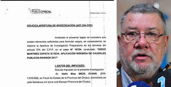 La Fiscalía de Rawson consideró que hay elementos suficientes para formular cargos y dispuso una Apertura de Investigación Preparatoria contra el exfiscal de Estado y actual diputado provincial del Frente para la Victoria, Hefin Blas Meza Evans, por presunta malversación de caudales públicos en la compra de muebles y artefactos para su vivienda particular.