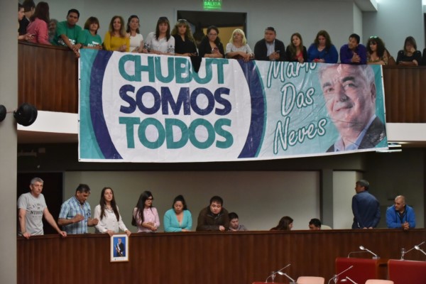 La Legislatura realiza una sesión de homenaje al gobernador Mario Das Neves. Los diputados recuerdan al mandatario provincial fallecido el martes a las 18:10.
