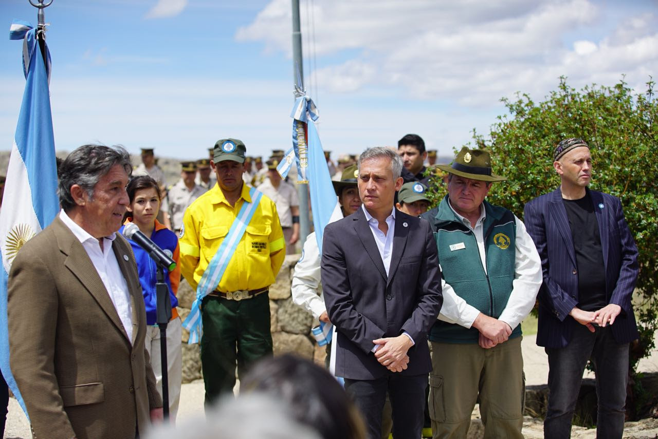 Encabezaron el acto el ministro de Ambiente y Desarrollo Sustentable de la Nación, Rabino Sergio Bergman; el presidente de Parques Nacionales, Eugenio Bréard; el intendente de la Municipalidad de Villa Carlos Paz, Esteban Avilés, y el intendente del Parque Nacional anfitrión, Sergio Acosta. También participaron autoridades nacionales, provinciales y municipales, instituciones educativas con sus abanderados, fuerzas vivas, la banda de la Escuela de Suboficiales Cabo Raúl Remberto Cuello y vecinos.