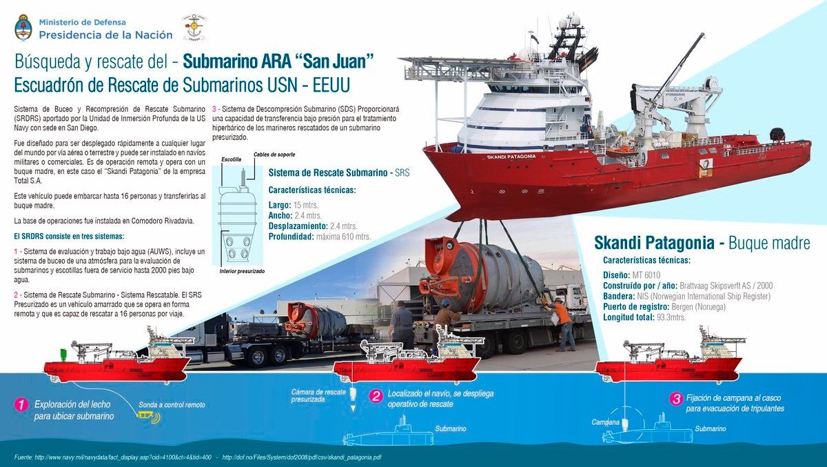 El vehículo de rescate viene acoplado con una cámara hiperbárica, para poder hacer el traspaso “bajo presión”: “En el caso que los tripulantes sometidos a presión se los mantienen en ese mini submarino a esa presión y se los transfiere directamente a una cámara.