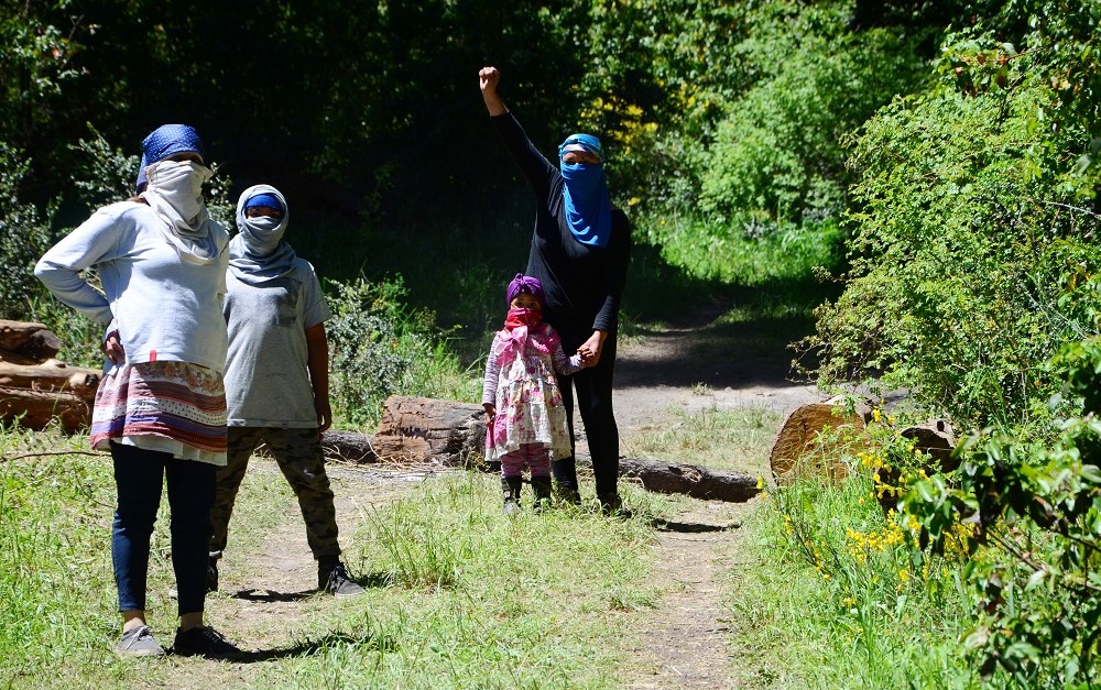 El territorio ocupado en Villa Mascardi por la lof Lafken Winkul Mapu continúa vigilada a la distancia por la policía federal y la Gendarmería, pero el tránsito sobre la ruta permanece habilitado y cualquiera puede acercarse e ingresar hasta la tranquera improvisada, sin mayor obstáculo.