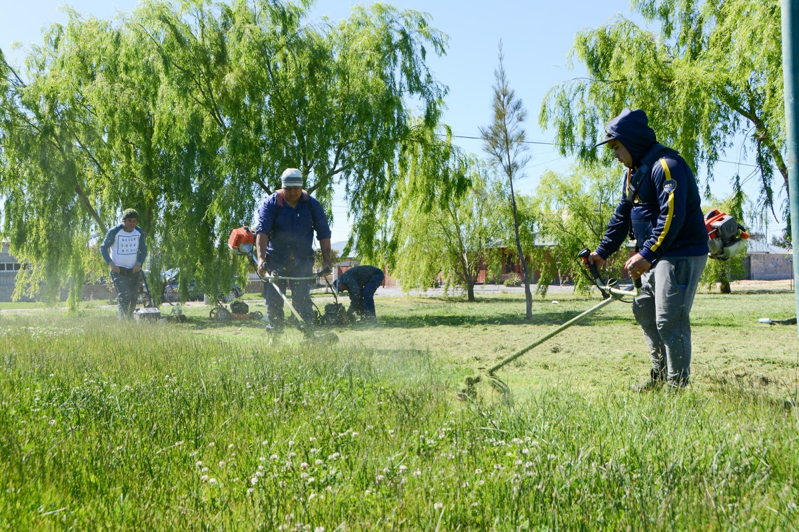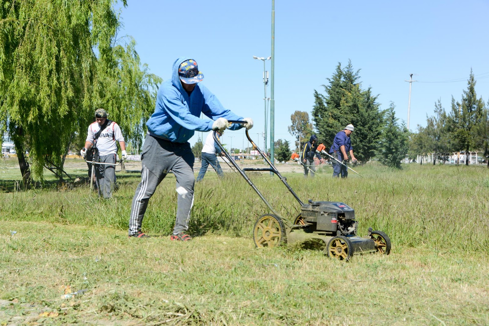 El director general de Obras Públicas, Darío Moraga, expresó que “continuamos con las tareas de limpieza y embellecimiento de la ciudad”, en este caso es “estuvimos cortando el pasto y forestando en la Plaza de la Cooperación que está ubicada a metros de la rotonda de los bomberos”.