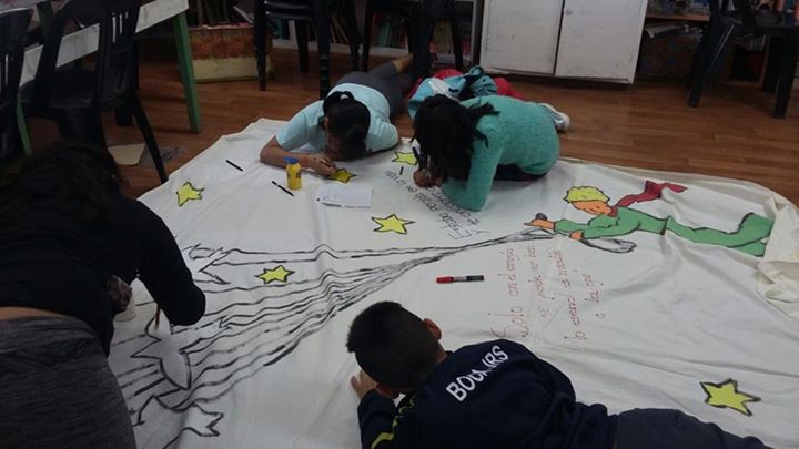 «El primer paso fue diagramar el borrador, para que después los alumnos trabajaran en la obra. Algunos dibujaron, otros trabajaron desde lo literario y otros pintaron», dijo Daniela Aybar y destacó que este mural fue un regalo de agradecimiento que quisimos hacer junto a los chicos, porque la película no sólo nos sirvió para trabajar valores humanos, sino también, de disparador para sumergirnos en esta maravillosa obra literaria».