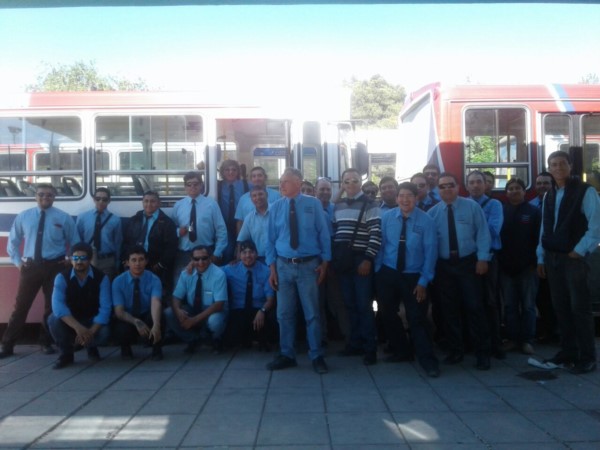 Los choferes se agolparon en la zona de la Terminal de Trelew, en donde los colectivos fueron estacionado interrumpiendo dos carriles de la calle Urquiza.