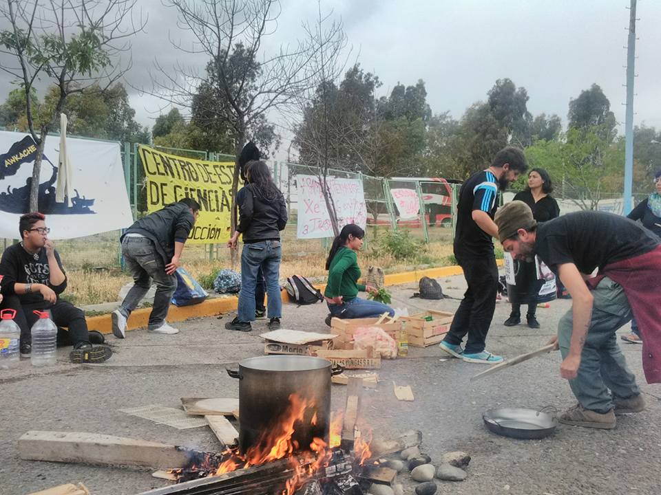 Con banderas y pancartas que en la que expresan su preocupación por la discontinuidad del sistema de boleto gratuito para los estudiantes, especialmente para aquellos jóvenes que viajan desde y hacia a Trelew con fines educativos, el grupo se manifestaba esta mañana en el lugar y pedía la presencia de funcionarios provinciales para plantear sus reclamos.
