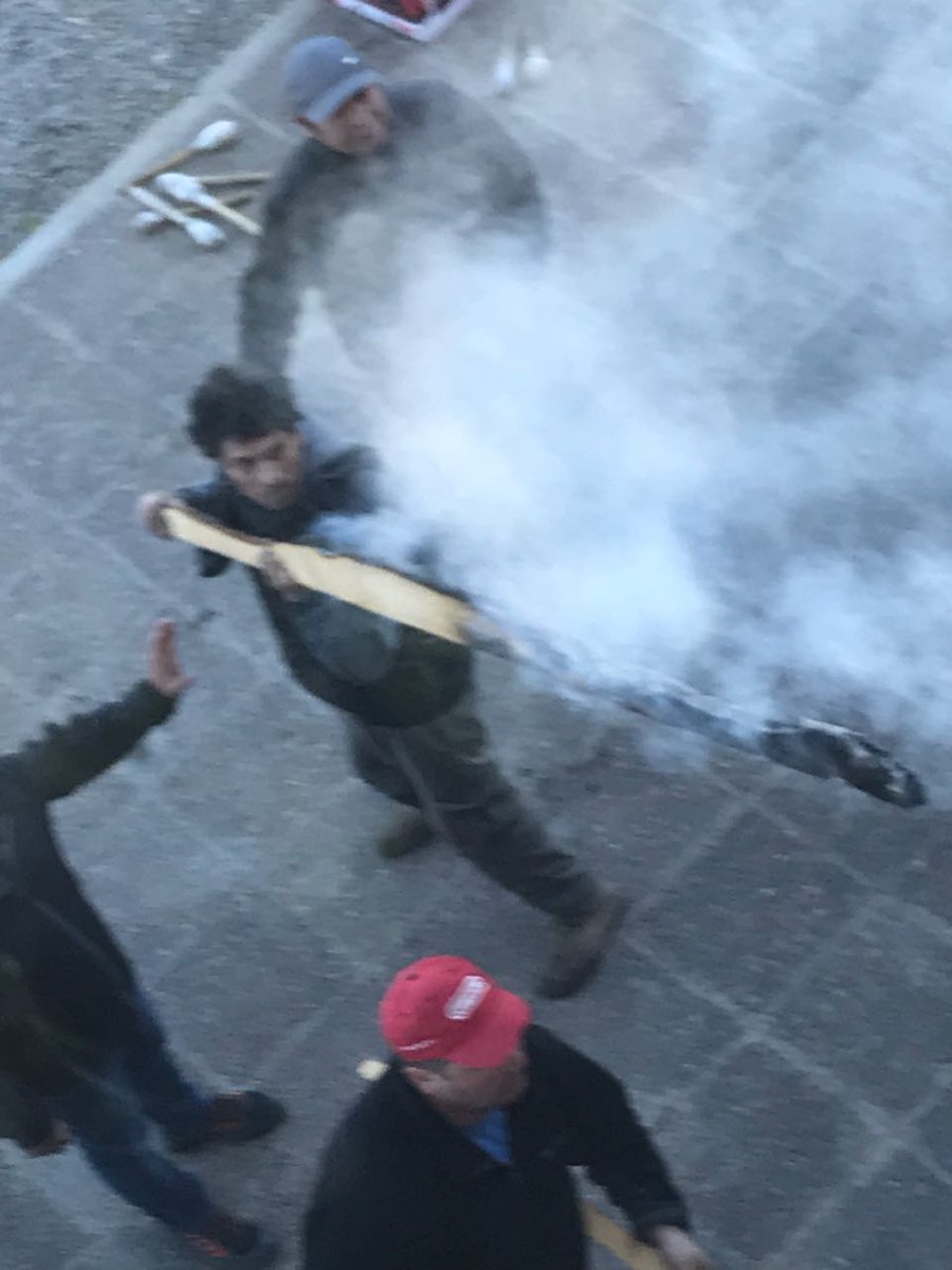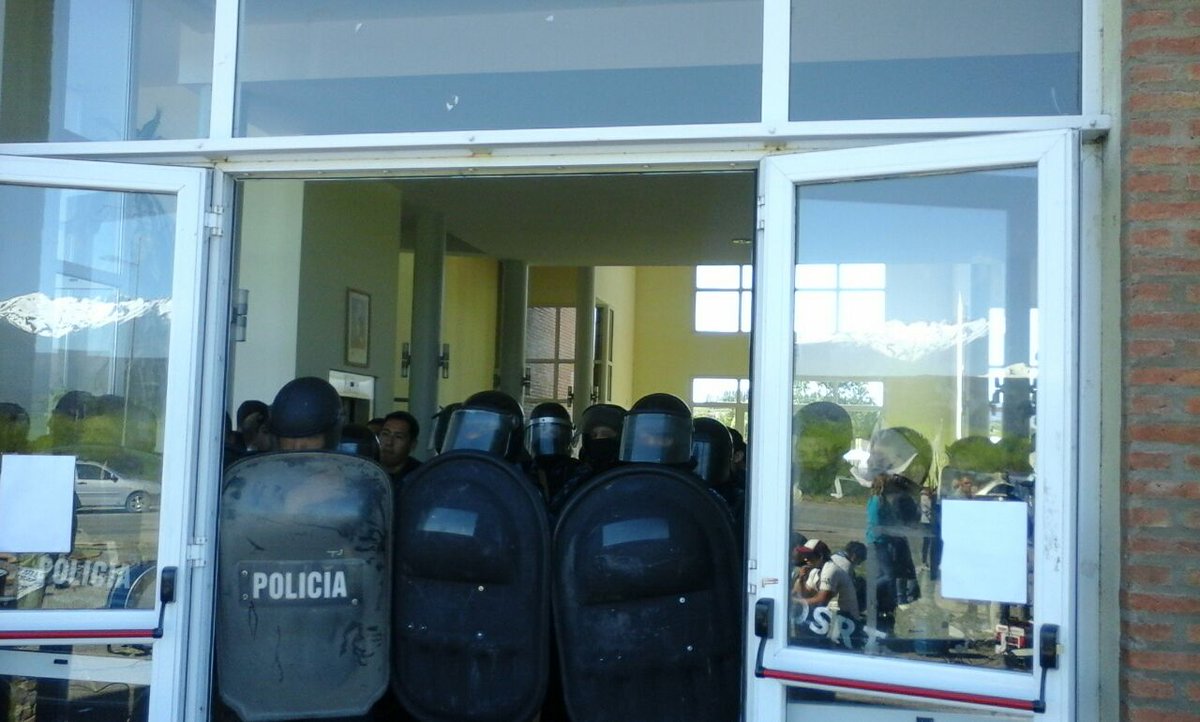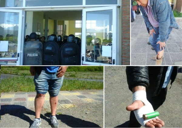 Según el relato de los presentes se pretendió entrar a la fuerza con palos y la policía respondió con balas de goma y gases lacrimógenos, lo que provocó diez heridos con balas de goma, entre ellos una mujer con ambas piernas lastimadas, y el traslado al Hospital de al menos tres personas.