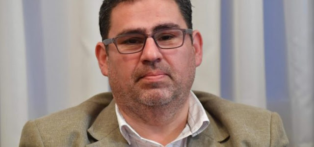 Visiblemente deteriorado (resaca) por el abuso de alcohol, de mal aspecto y visiblemente avergonzado con la cabeza «gacha» para no ser reconocidos por los vecinos de Rawson a los cuales pretende convencer para ser Intendente de la Ciudad en 2019.