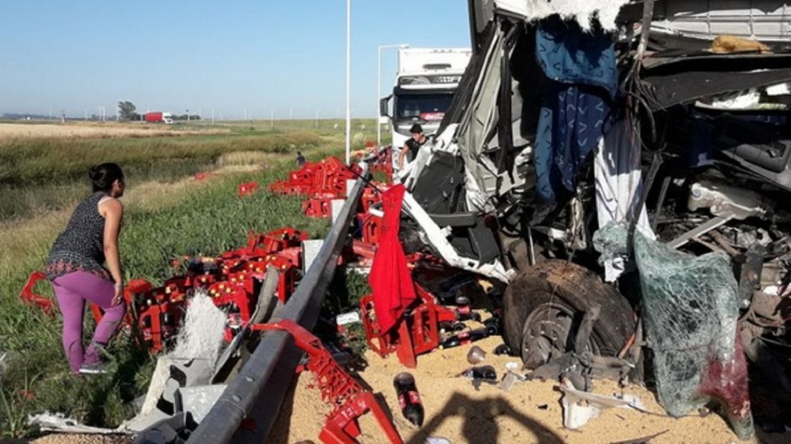 Según la Policía, también estuvo involucrado un tercer camión y como consecuencia del impacto, perdió la vida el camionero Héctor Peralta, de 36 años.