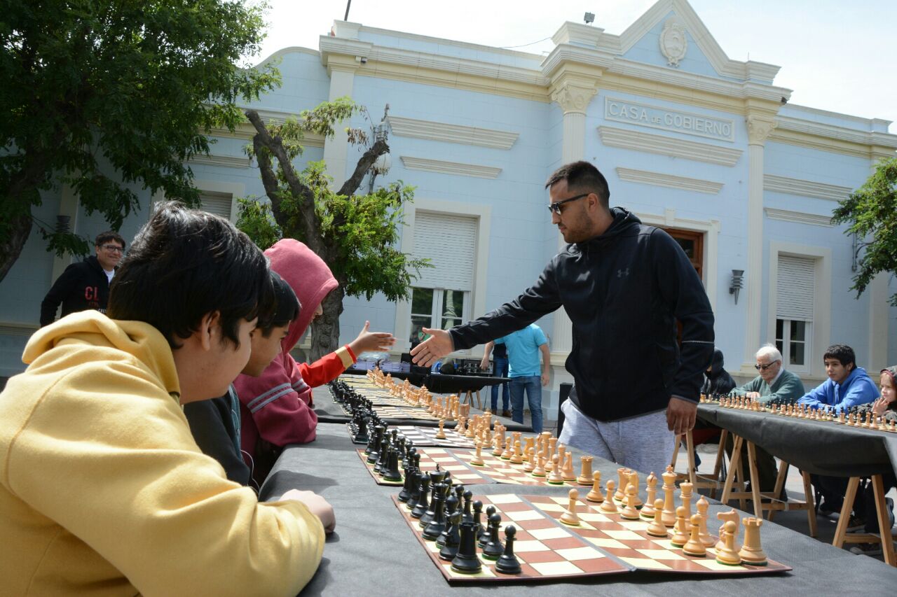 El multicampeón de Rawson, Daniel Martínez, dio una sesión de partidas simultáneas de 18 tableros, entre los que se destacaban 4 jugadores que forman parte de la Selección Juvenil de la provincia.