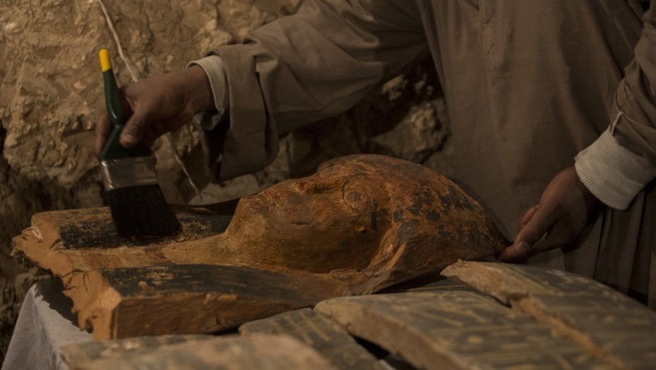 Una momia, dos máscaras funerarias y frescos con la pintura intacta son parte del hallazgo.