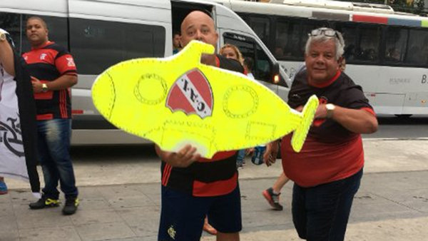 Pero también con las burlas los aficionados del «Fla» atravesaron largamente el límite del folclore. Dos de ellos se apersonaron en la puerta del hotel en la zona de Barra de Tijuca exhibiendo una maqueta de un submarino con el escudo de Independiente dado vuelta, en clara alusión al ARA San Juan, la nave argentina que se encuentra desaparecida desde el 15 de noviembre, con 44 tripulantes a bordo.