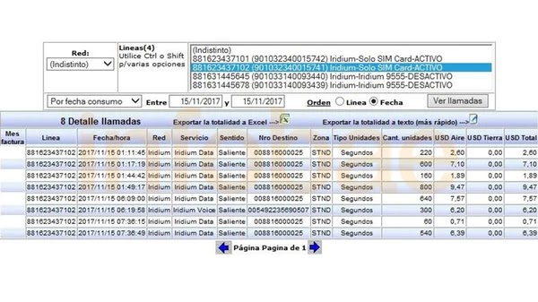 Según los registros de la empresa Tesacom, el teléfono satelital del ARA San Juan realizó 8 comunicaciones salientes durante la madrugada del miércoles 15. Coincide con el lapso durante el cual se intentaba reparar la avería en las baterías.