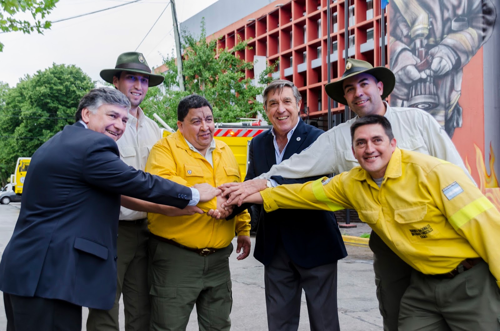 Durante la entrega, realizada en el Municipio de Quilmes, estuvieron presentes el intendente local, Martiniano Molina, quien ofició de anfitrión; el secretario de Protección Civil del Ministerio de Seguridad de la Nación y responsable de la Secretaría Ejecutiva del Sistema Nacional de Gestión Integral del Riesgo (SINAGIR), Emilio Renda; el director nacional de Operaciones de Parques Nacionales, José Albrizio; el director nacional de Protección y Preservación de Daños en Incendios Forestales del Ministerio de Ambiente, Guillermo Barisone; el director de Lucha Contra Incendios Forestales y Emergencias de APN, Victoriano Curuhual; guardaparques y brigadistas.