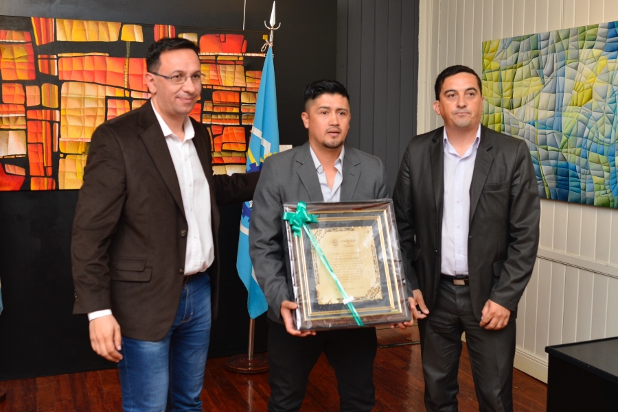 Durante el acto realizado en el Museo Municipal de Artes Visuales, el intendente Adrián Maderna entregó una placa al responsable de la fuerza, subcomisario Alejandro Carranza, ante la presencia de funcionarios municipales y autoridades de la Policía, con asiento en la ciudad.
